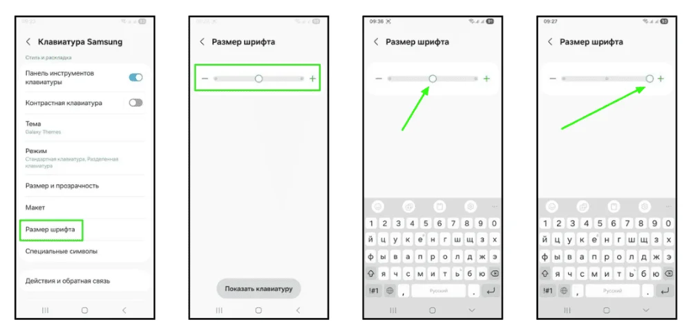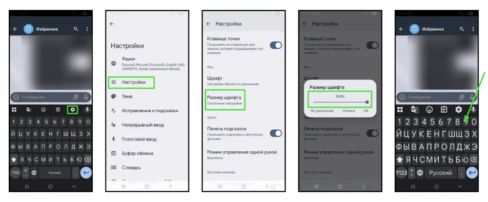 Помимо величины самих клавиш, важна и читаемость букв на них. Увеличение шрифта помогает различать символы при плохом освещении или для людей с ослабленным зрением. Чтобы изменить размер текста на клавишах: