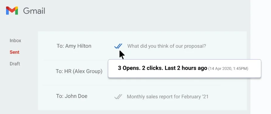 После установки трекера в интерфейсе Gmail появляются маркеры — классические «птички», как в популярных мессенджерах.