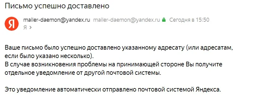 Если галочка стоит, после отправки автор получает сообщение о том, что действие выполнено успешно — письмо доставлено.