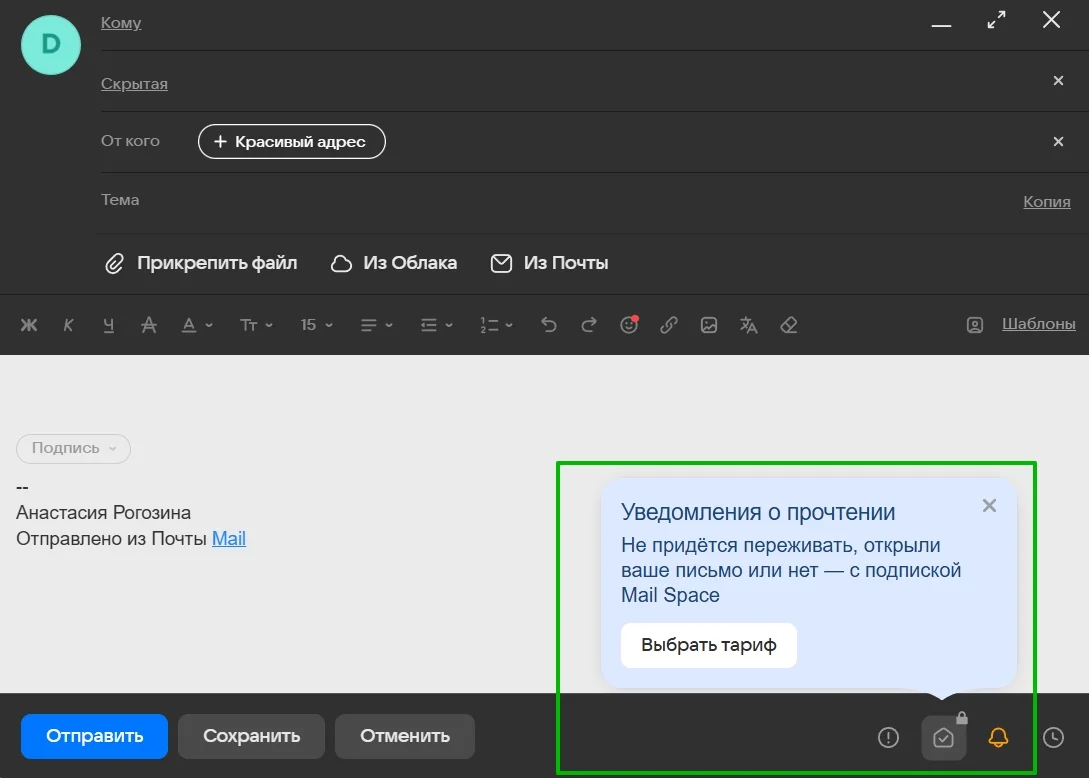 Теперь можно отслеживать статус отправленных писем, а также планировать их отправку. Функция отслеживания при необходимости включается и отключается.