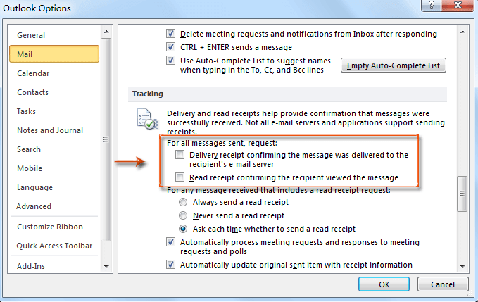 Outlook — один из немногих почтовых клиентов, у которого есть встроенная функция уведомлений как о доставке, так и о прочтении. Их можно включить или выключить в настройках программы — достаточно установить или убрать флажок в соответствующем пункте. После этого в письме у получателя появится возможность отправить вам уведомление о прочтении. Если он этого не сделает, уведомление отправлено не будет, даже если письмо было открыто.