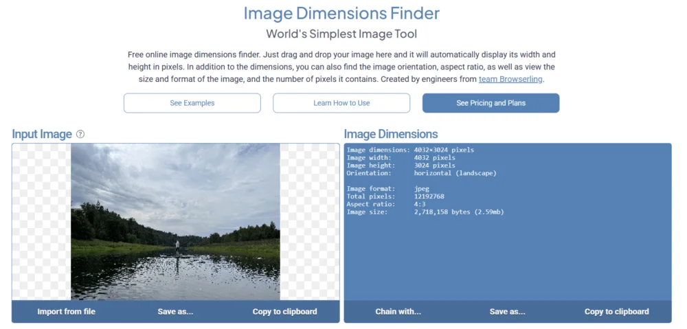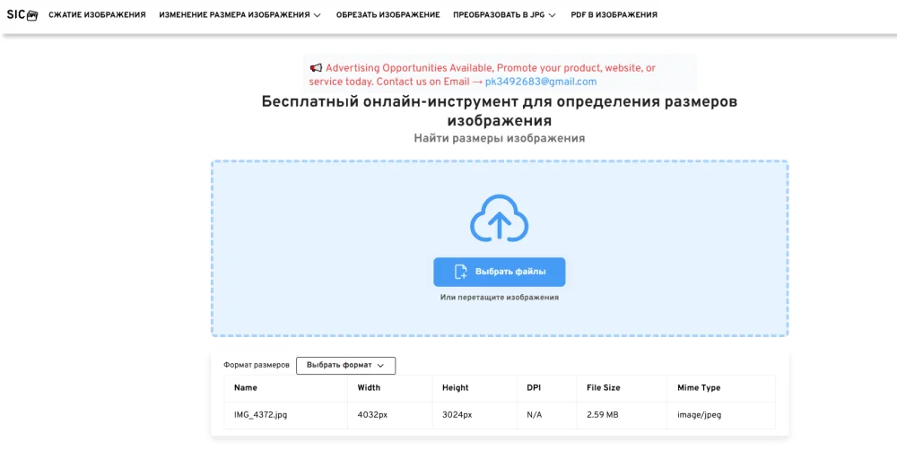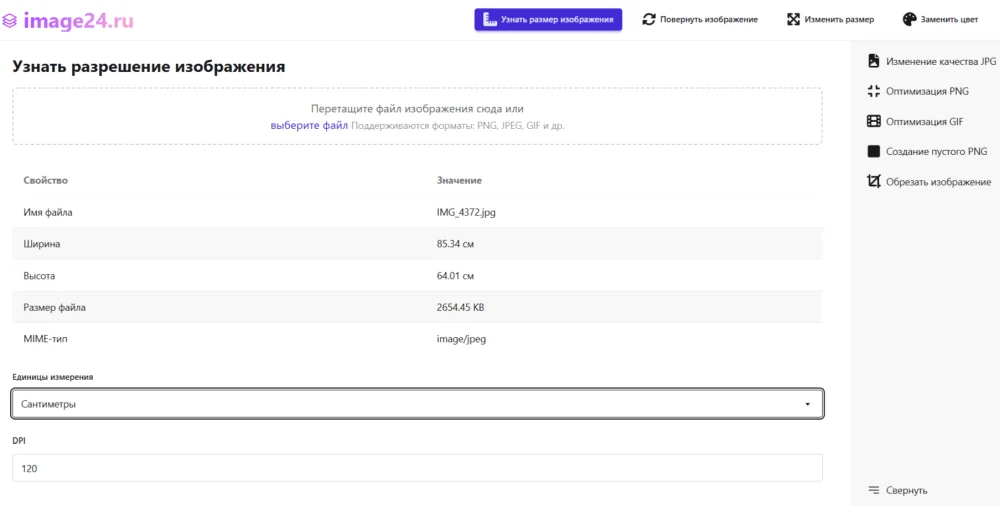 Сервис для определения размера изображений. Также в нем можно узнать ориентацию изображения, соотношение сторон, а также посмотреть размер и формат изображения и количество содержащихся в нем пикселей.