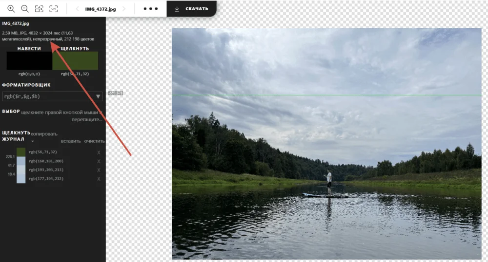 Еще один сервис для определения размера картинок. Дополнительно на сайте можно определять цвет любой точки, измерять расстояния, обрезать кадр и удалять объекты. Есть и более профессиональные инструменты: построение гистограммы цвета, анализ артефактов JPEG и статистика по выделенным областям. Файлы можно загружать пакетно, но анализируются они по одному.