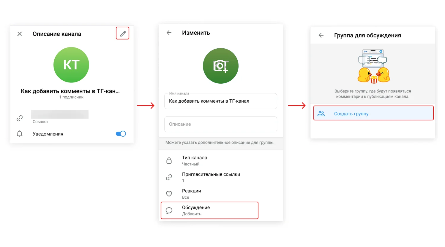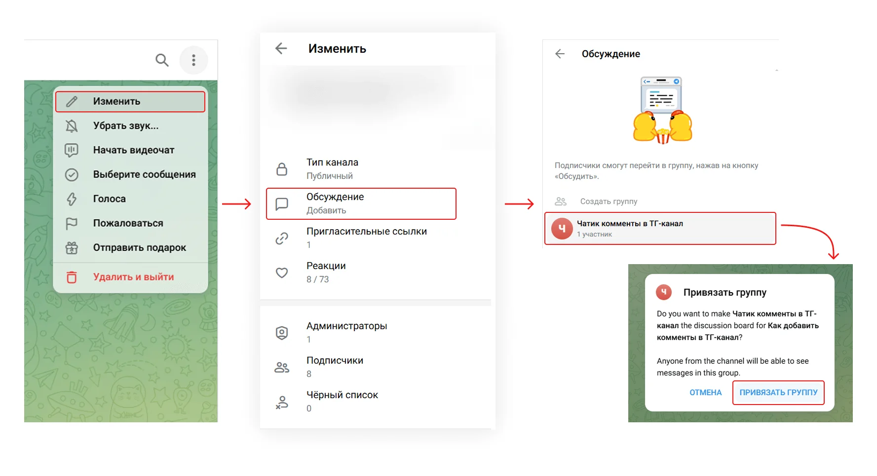 Чтобы включить комментарии в Telegram-канале на телефоне, нужно действовать примерно так же: