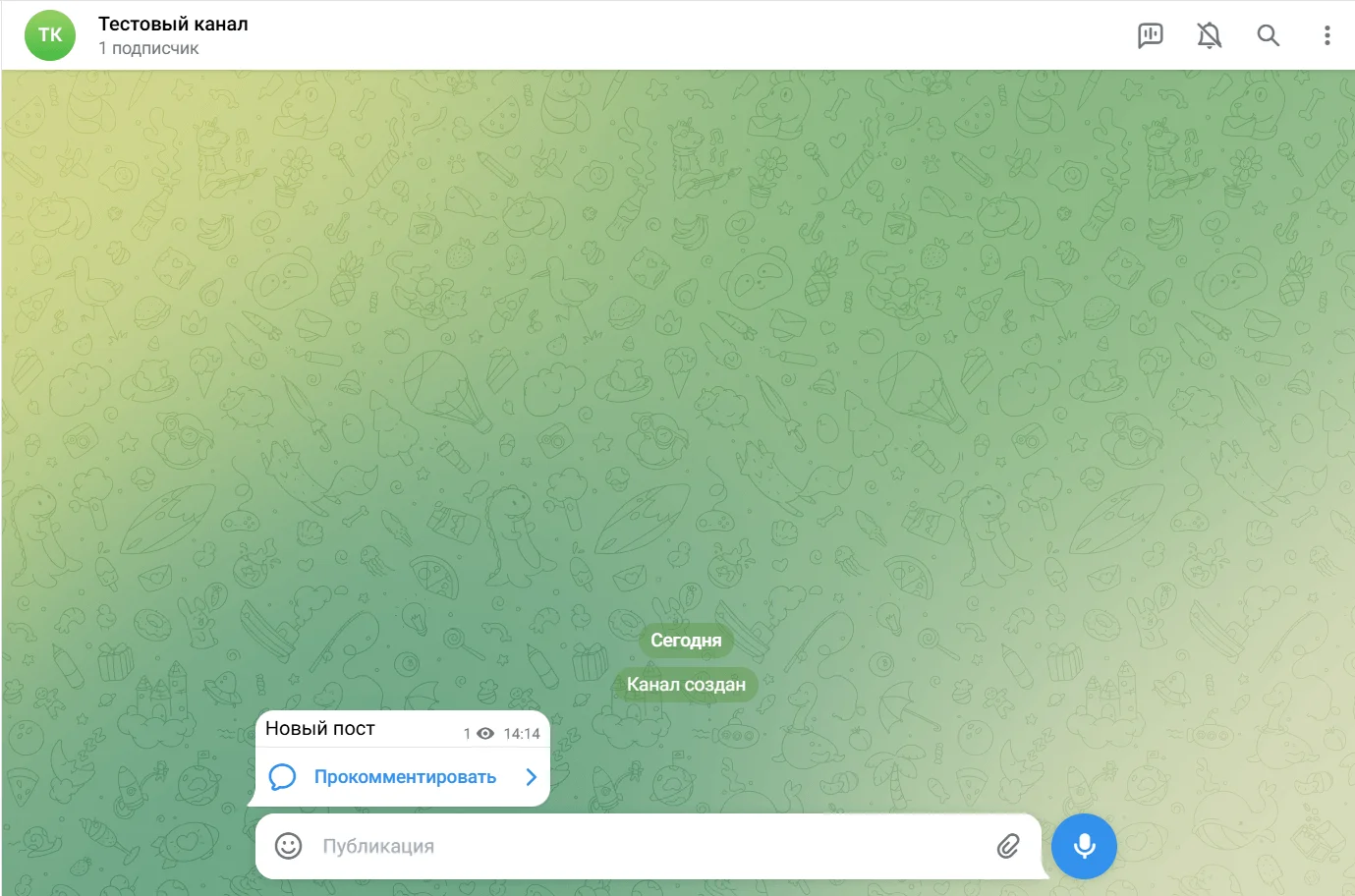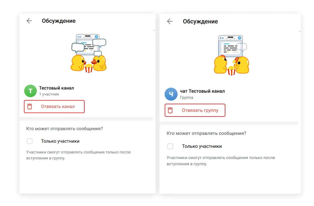 Готово — группа привязана к каналу. Каждая публикация будет автоматически репоститься из канала в группу. Под новыми постами в канале появится кнопка «Прокомментировать», которая откроет соответствующую ветку обсуждений.