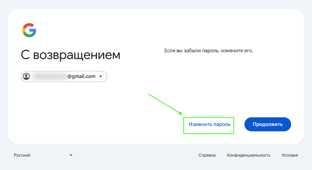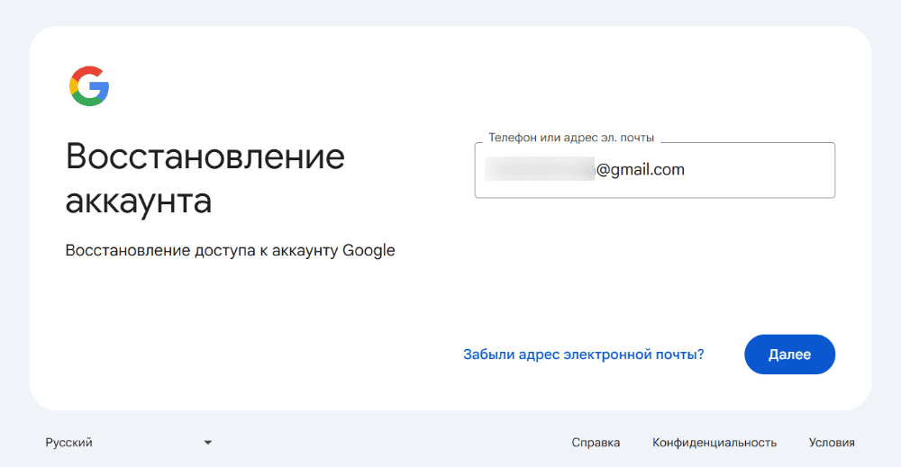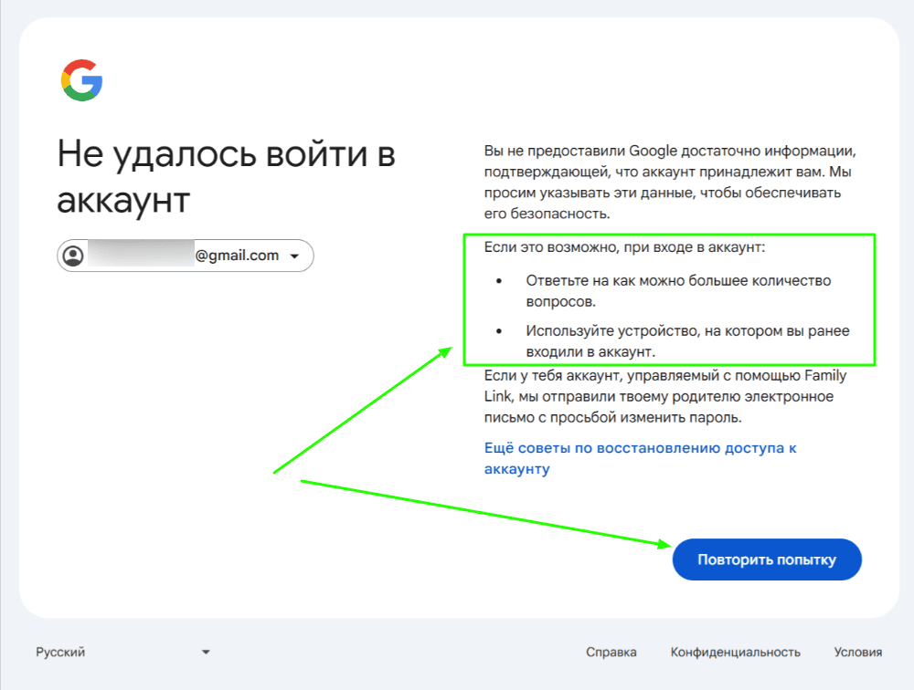 Google рекомендует выполнять восстановление пароля в типичных условиях. Если это возможно, используйте привычное устройство и браузер в месте, где вы обычно входите в аккаунт (дома или на работе). В противном случае ваши действия могут быть приняты за действия злоумышленников.