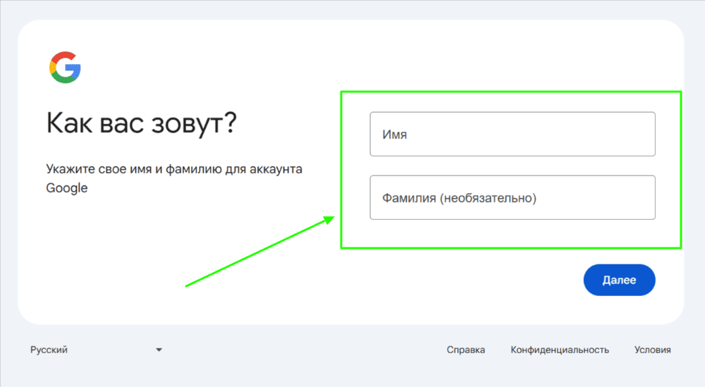 Укажите имя и фамилию, указанные в почтовом аккаунте.