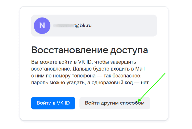 После ввода кода вы можете войти с VK ID или нажмите на «Войти другим способом».