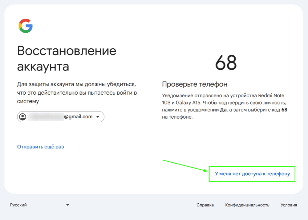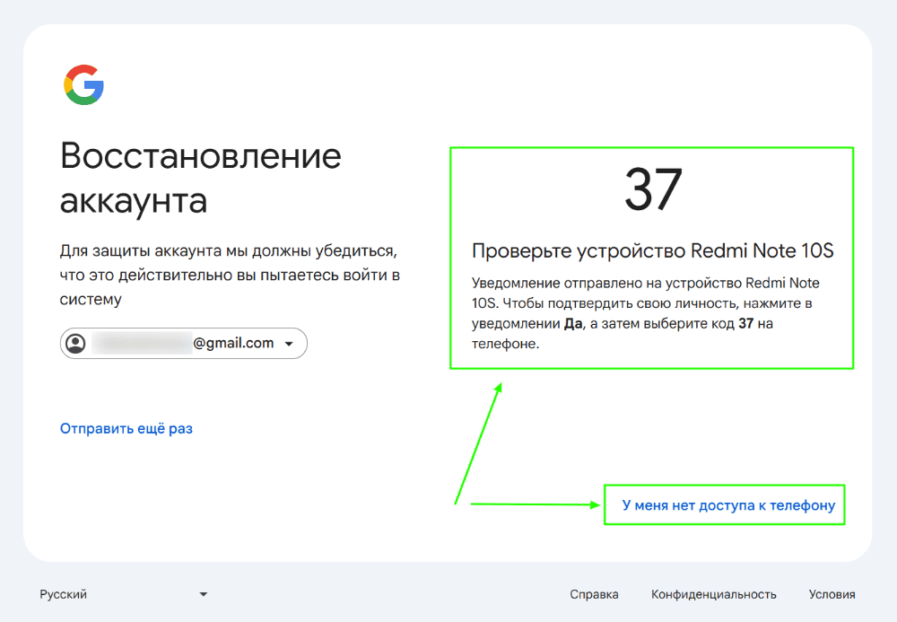 Если перечисленные способы восстановления недоступны, попробуйте войти через использованные ранее устройствами. Важно чтобы на устройстве был выполнен вход в аккаунт. Это поможет авторизоваться в аккаунте другими способами без пароля. Например: