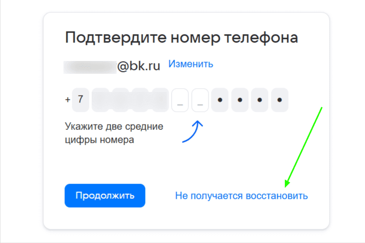 На этапе подтверждения номера телефона кликните на «Не получается восстановить».