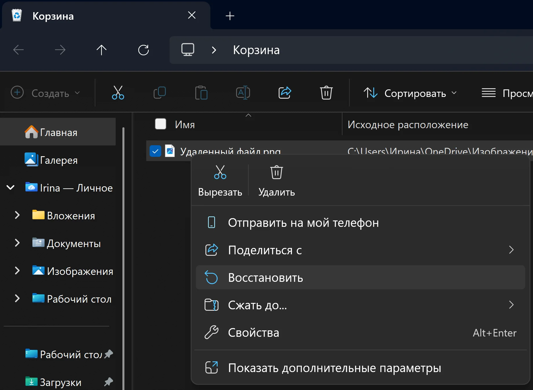 winfr C: D: /regular /n "\Users\Ирина\OneDrive\Изображения\Снимки экрана\Удаленный файл.png"
