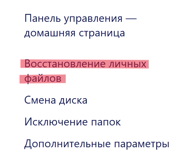 Чтобы восстановить удаленные данные, перейдите в папку «История файлов» и нажмите на кнопку «Восстановление личных данных» слева.