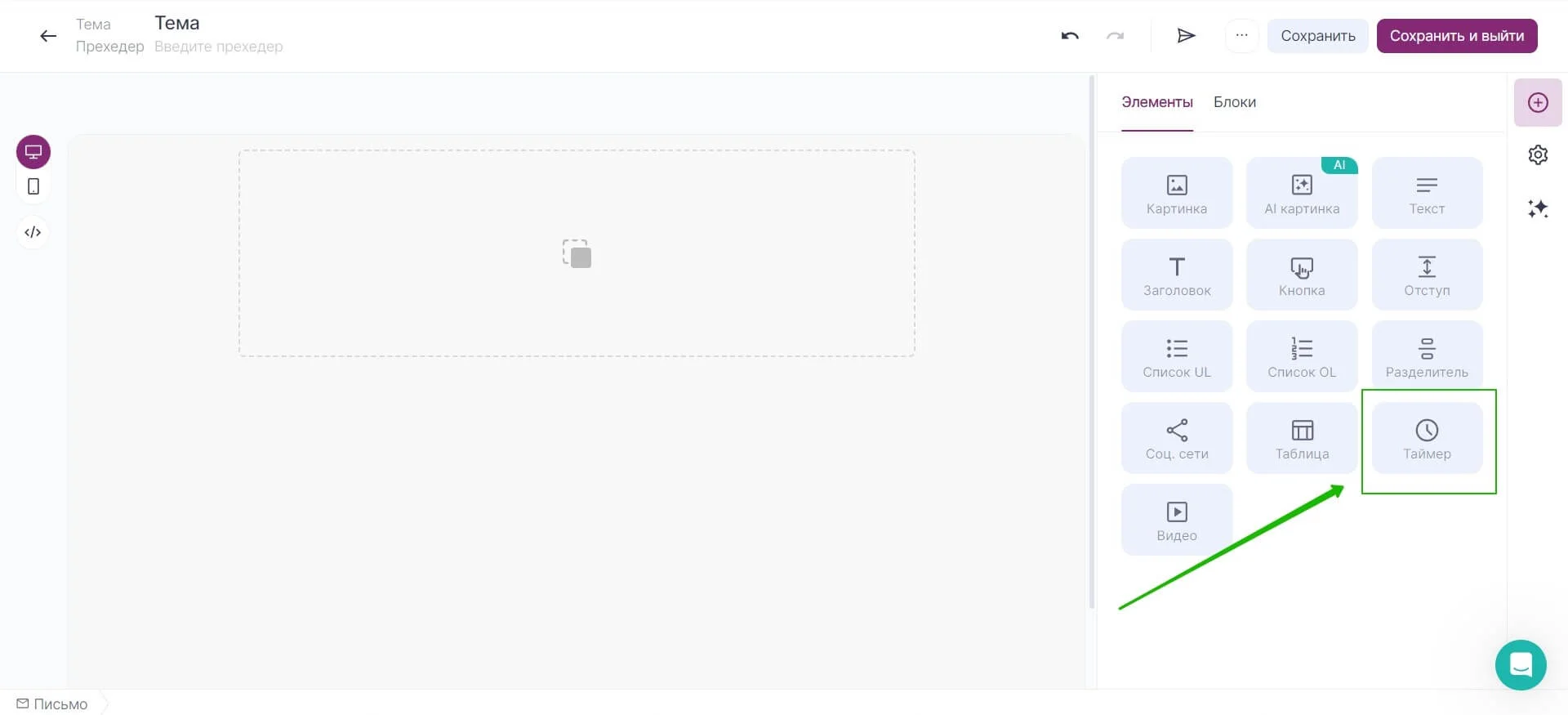 Некоторые сервисы для создания рассылок позволяют вставить таймер прямо в редакторе: например, такой элемент есть в блочном редакторе Unisender.