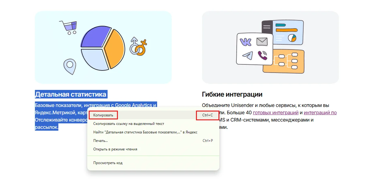 Для копирования и вставки текста на устройствах с Windows используют сочетания клавиш Ctrl+C (копировать) и Ctrl+V (вставить). При этом фрагмент будет вставлен в том же виде, что в исходном материале.
