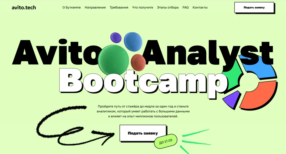 Пример кнопок с понятными шрифтами на лендинге буткемпа Авито: