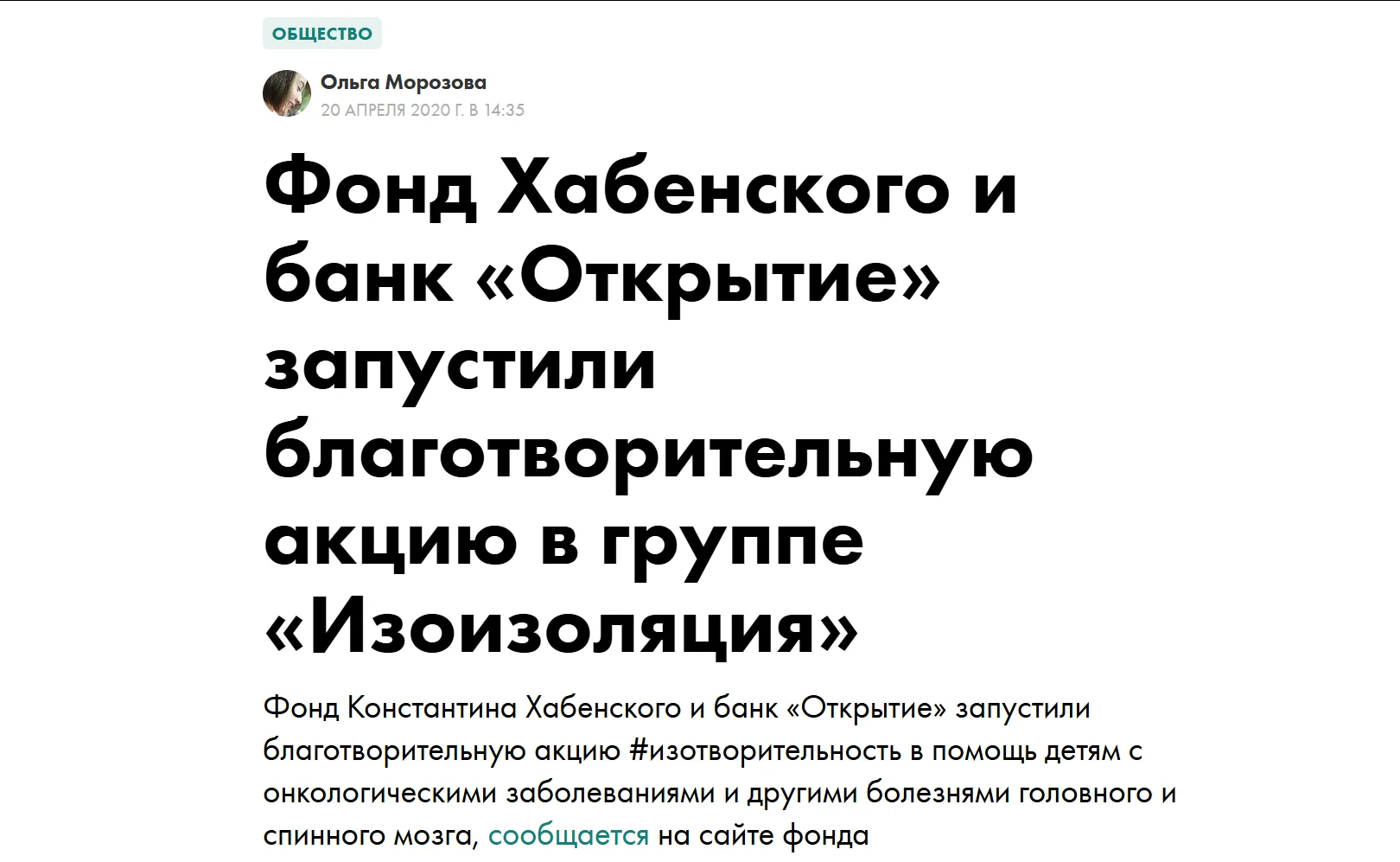 Например, в 2020 году банк «Открытие» вместе с Фондом Константина Хабенского провел благотворительную акцию в группе #ИзоИзоляция, где все желающие делали косплеи на известные картины. В течение пяти дней лайки под постами-лидерами конвертировались в рубли. Деньги пошли на помощь детям с тяжелыми заболеваниями головного и спинного мозга.