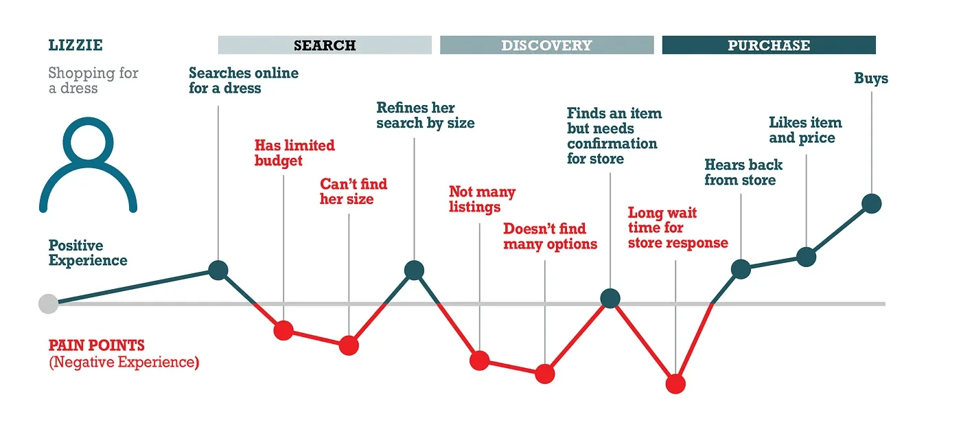 На каждом этапе клиент может столкнуться с фрустрацией: например, сложно понять условия доставки, неудобно оформить заказ или переживать, что останется без поддержки. Карта болевых точек поможет увидеть, где именно возникают эти трудности, и попытаться их предотвратить.