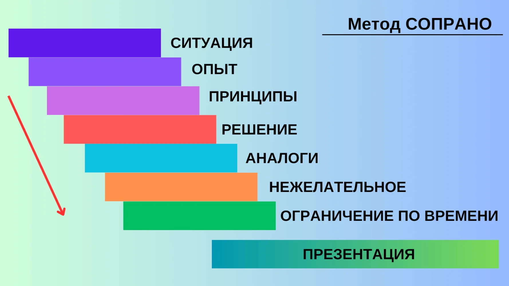Метод СОПРАНО предполагает длительные беседы. Для использования этого метода очень важно, чтобы продавец отлично разбирался в собственной продукции и области её применения. Также нужно знать обо всех основных конкурентах и их предложениях.