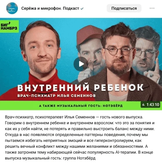 Когда есть такой портрет, проще выбирать темы для выпусков, звать подходящих гостей и говорить на языке, понятном аудитории. Это помогает точнее настраивать продвижение, выбирать партнеров, которые помогут привести целевых слушателей.
