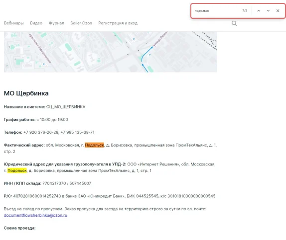 У Ozon в открытом доступе есть все адреса складов, отметки складов на Яндекс Картах и даже схемы проезда. Можно комбинацией клавиш «Ctr l+ F» найти склад поблизости с вашим городом.