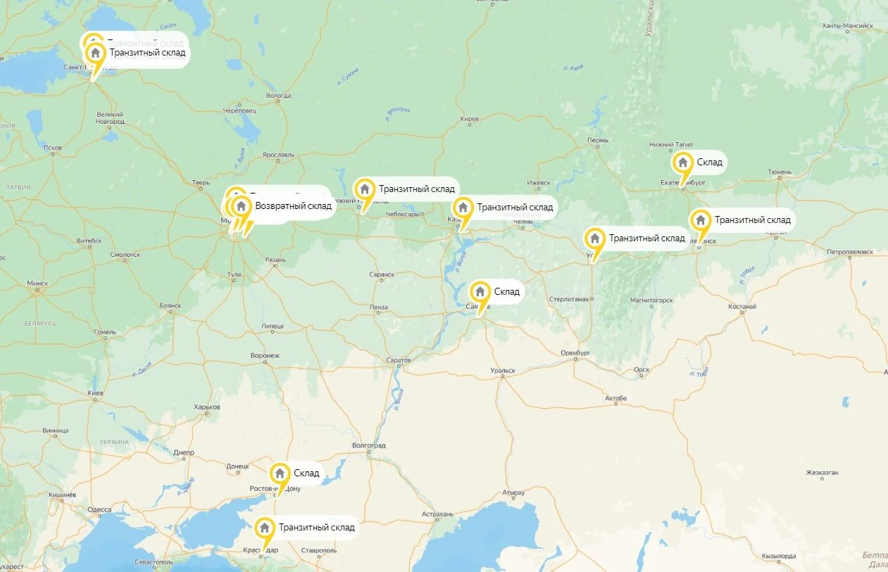 Количество складов. У Яндекс Маркета меньше всего складов — всего 5. Транзитных складов — 13. Адреса всех складов есть на Яндекс Картах.