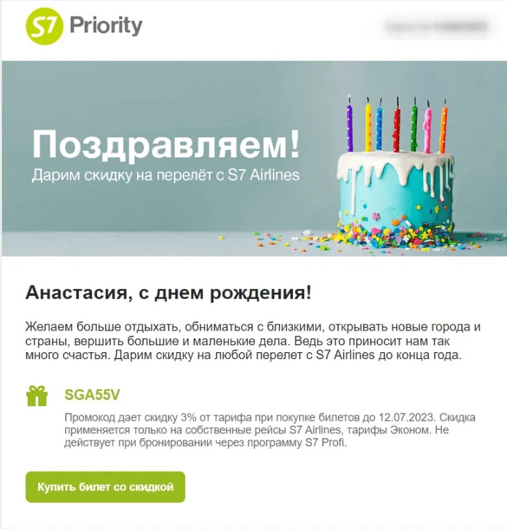 Если в теме и заголовке есть слова «Поздравляем» или «С Днём рождения», а также содержится краткая информация об акциях, подарках или скидках, приуроченных к конкретному празднику, оно наверняка будет открыто и прочитано.