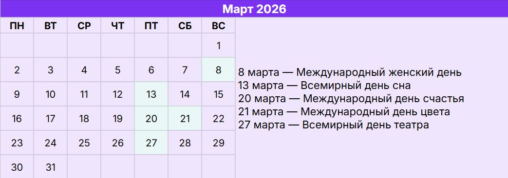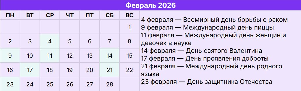 Совет: используйте этот календарь как стратегическую основу, а не строгий план. Выбирайте несколько ключевых поводов в месяц, которые идеально совпадают с ценностями вашего бренда и потребностями аудитории. Качество интеграции и глубина проработки смыслов всегда важнее количества публикаций.
