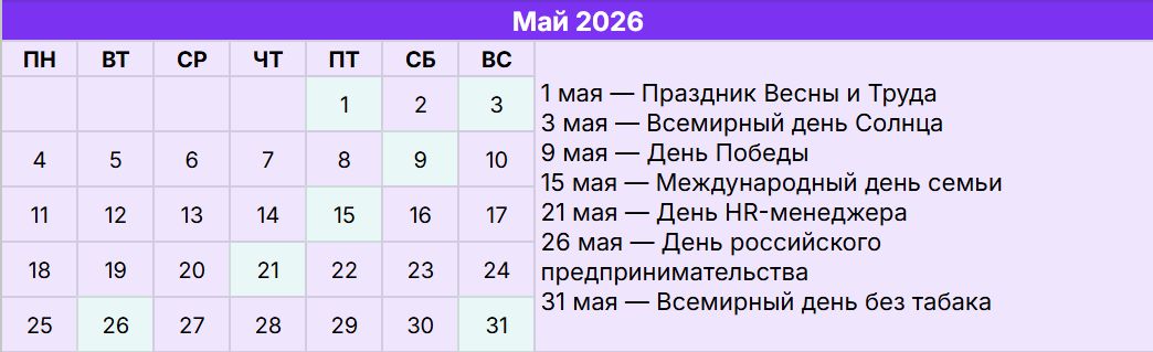 Это переходный месяц между весенней активностью и летним затишьем. Длинные выходные в начале месяца создают особый ритм. Важно учитывать снижение внимания аудитории. При этом май отлично подходит для семейных и ценностных коммуникаций, а также для работы с предпринимательским сегментом. После праздников наступает время подведения промежуточных итогов года.