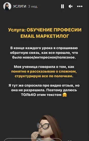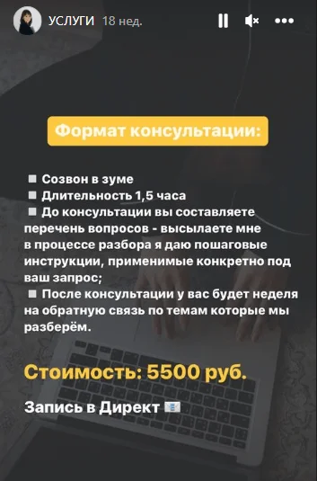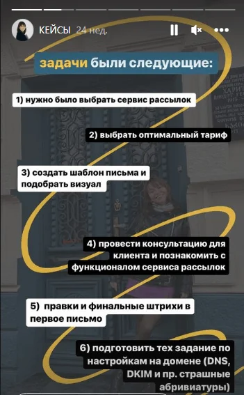 Так Саша рассказывает о кейсах и услугах в своем аккаунте в Instagram*