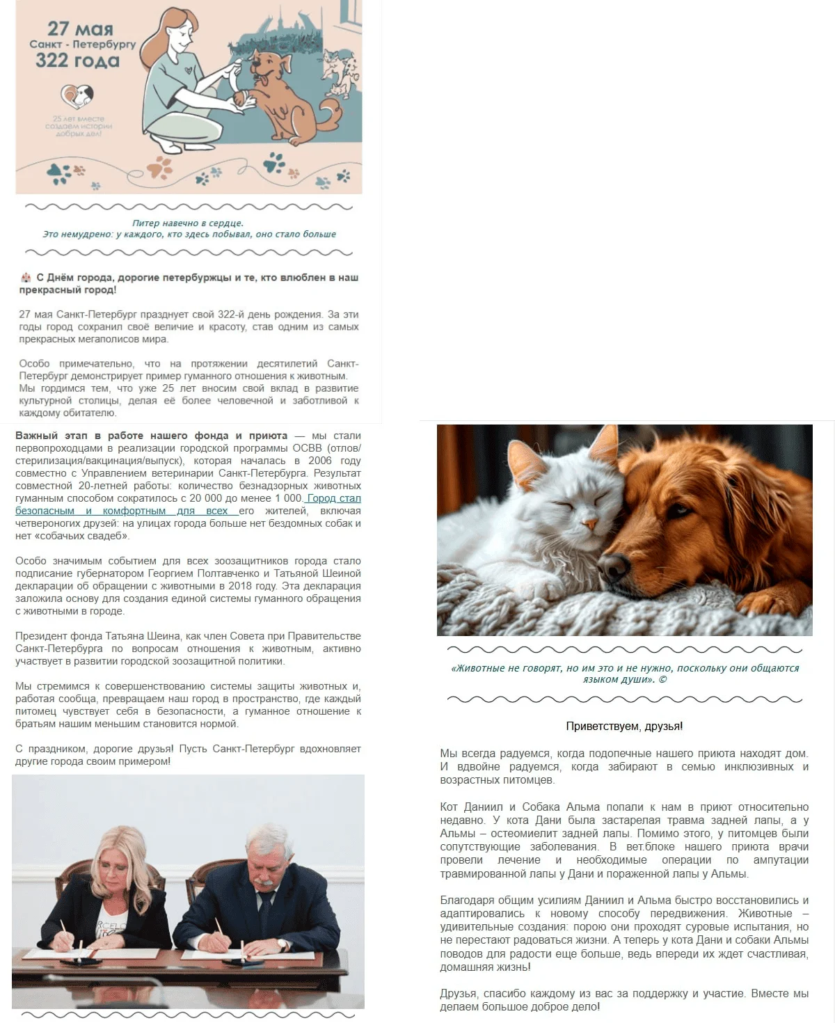 Добавили в план новые рубрики, чтобы люди не только получали информацию о сборах, но и узнавали больше о жизни приюта. Например: