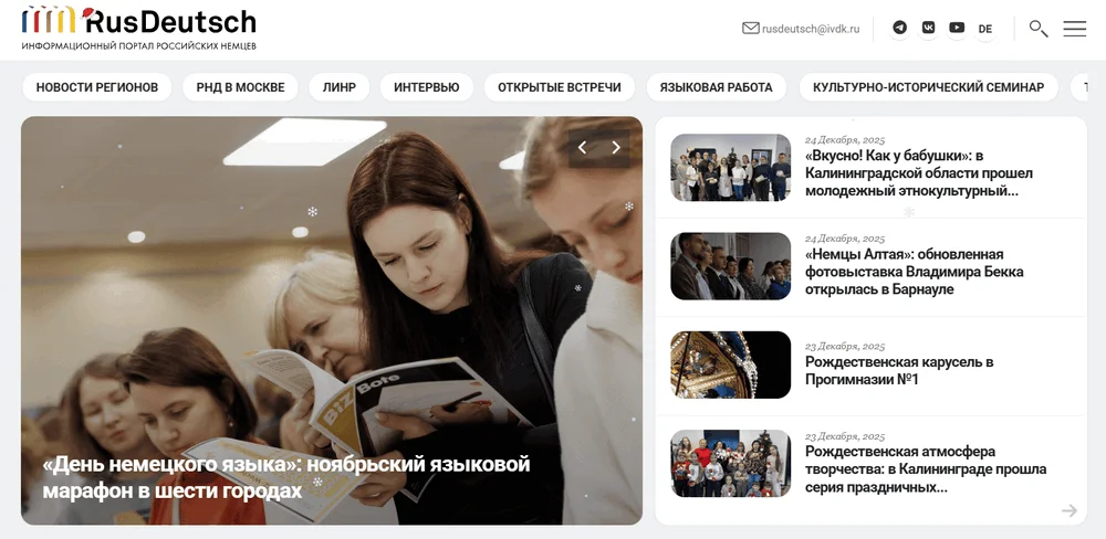 Российские немцы интересуются историей, культурой и языком своего народа. Наша организация помогает им находить информацию об этом. Например, на портале RusDeutsch мы публикуем: