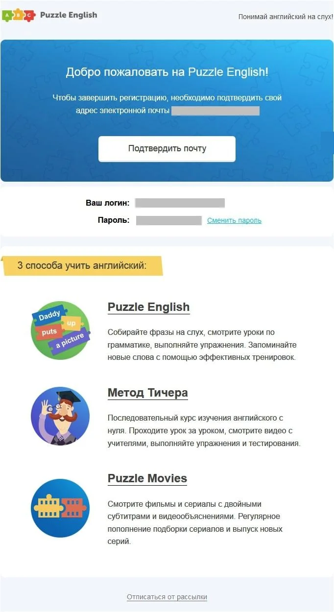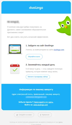В статье будет еще несколько платформ для изучения английского. Посмотрите, как сильно у них отличаются welcome-письма.