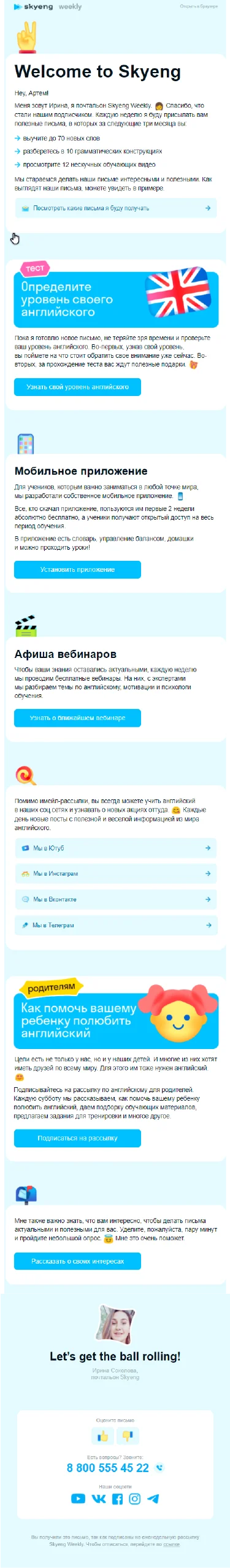 Что это. Платформа для изучения английского языка. Компания отправляет несколько рассылок:
