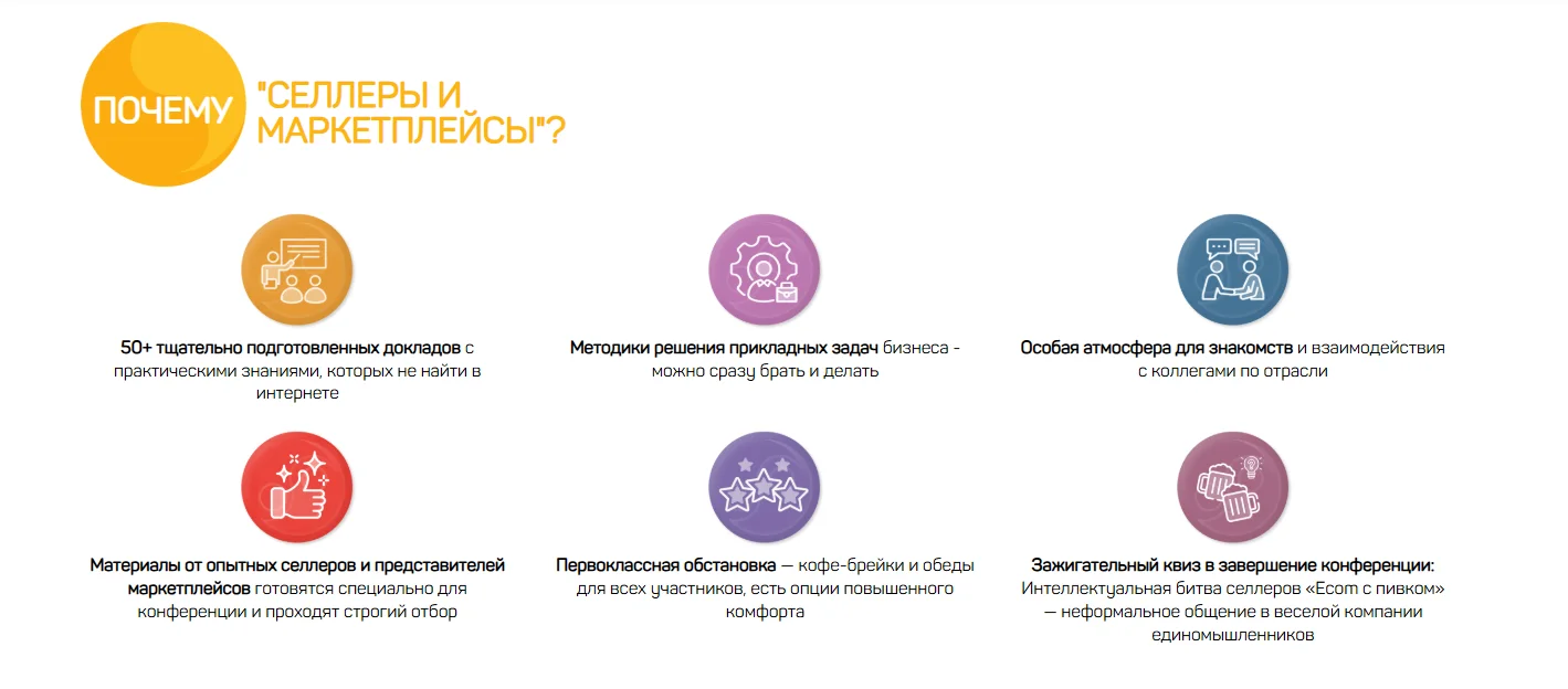 Конференция для продавцов, поставщиков и производителей и брендов с опытом работы на маркетплейсах от двух лет. За два дня участники события смогут услышать более 50 докладов экспертов и порешать практические задания, которые помогут в продвижении товаров на онлайн-площадках. Пространство для общения и нетворкинга.