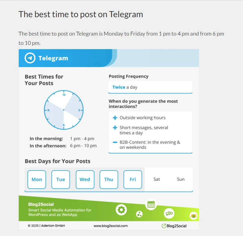 Не стоит ориентироваться на средние цифры и ровное время. В среднестатистический прайм-тайм в ленте появляется туча публикаций. Чтобы не затеряться среди них, ставьте время, в которое активна именно ваша ЦА, и часы с минутами, например: 8:43, 19:07. Отстраиваться по времени от конкурентов особенно важно в Telegram, где пользователям приходят уведомления.