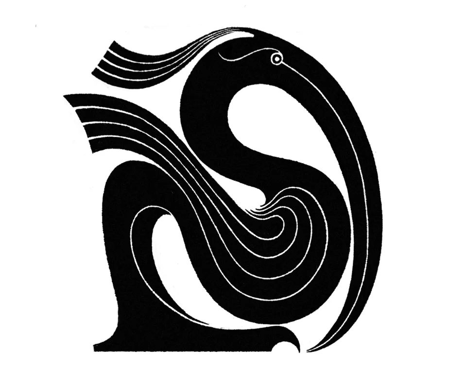 Ниже — фигура птицы из изогнутых линий.