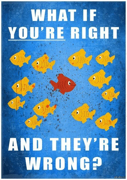 Сопровождается надписью: «А что, если ты прав, а они ошибаются?».