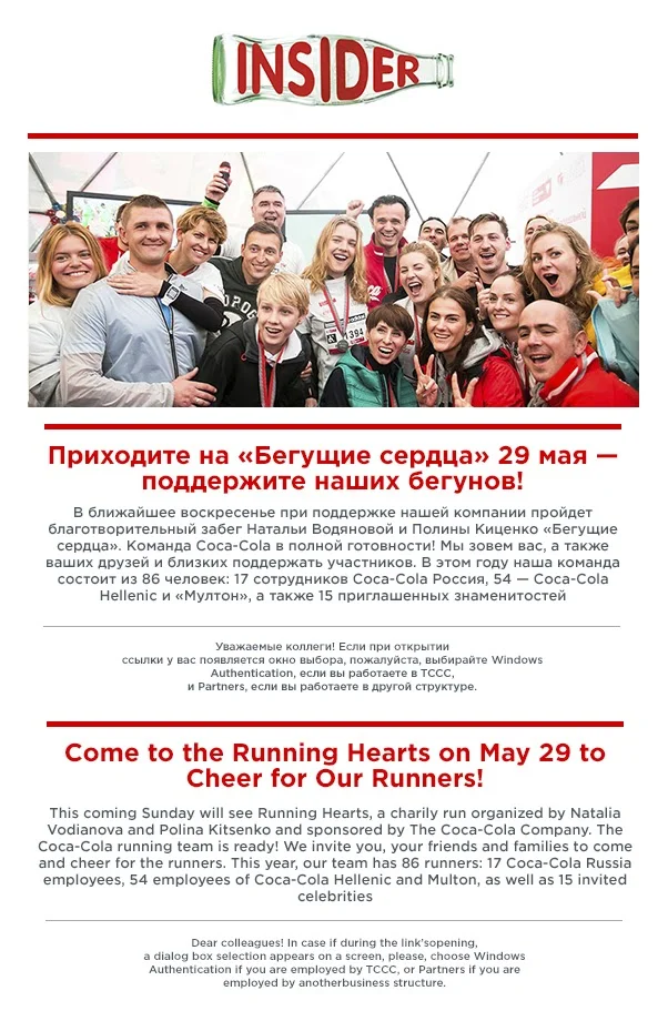 Ещё один способ сплотить сотрудников через рассылку — регулярно поздравлять их с достижениями компании. Все мы охотно присоединяемся к группе победителей. Вспомните, как обычно говорят о футболистах: ОНИ проиграли, но МЫ выиграли. Так дайте сотрудникам дополнительный повод гордиться компанией и ощутить себя частью успешной команды.