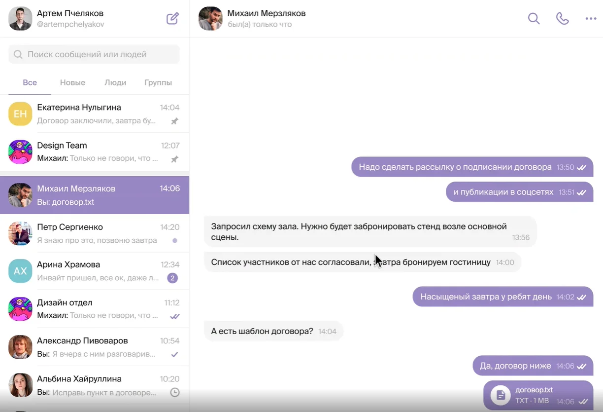 Изучив решения и отзывы, я выбрала несколько мессенджеров с удобным функционалом. При этом обратила особое внимание на сервисы, в которых использовано российское ПО, — они не подвержены санкциям, работают без блокировок и оплачиваются картами российских банков.