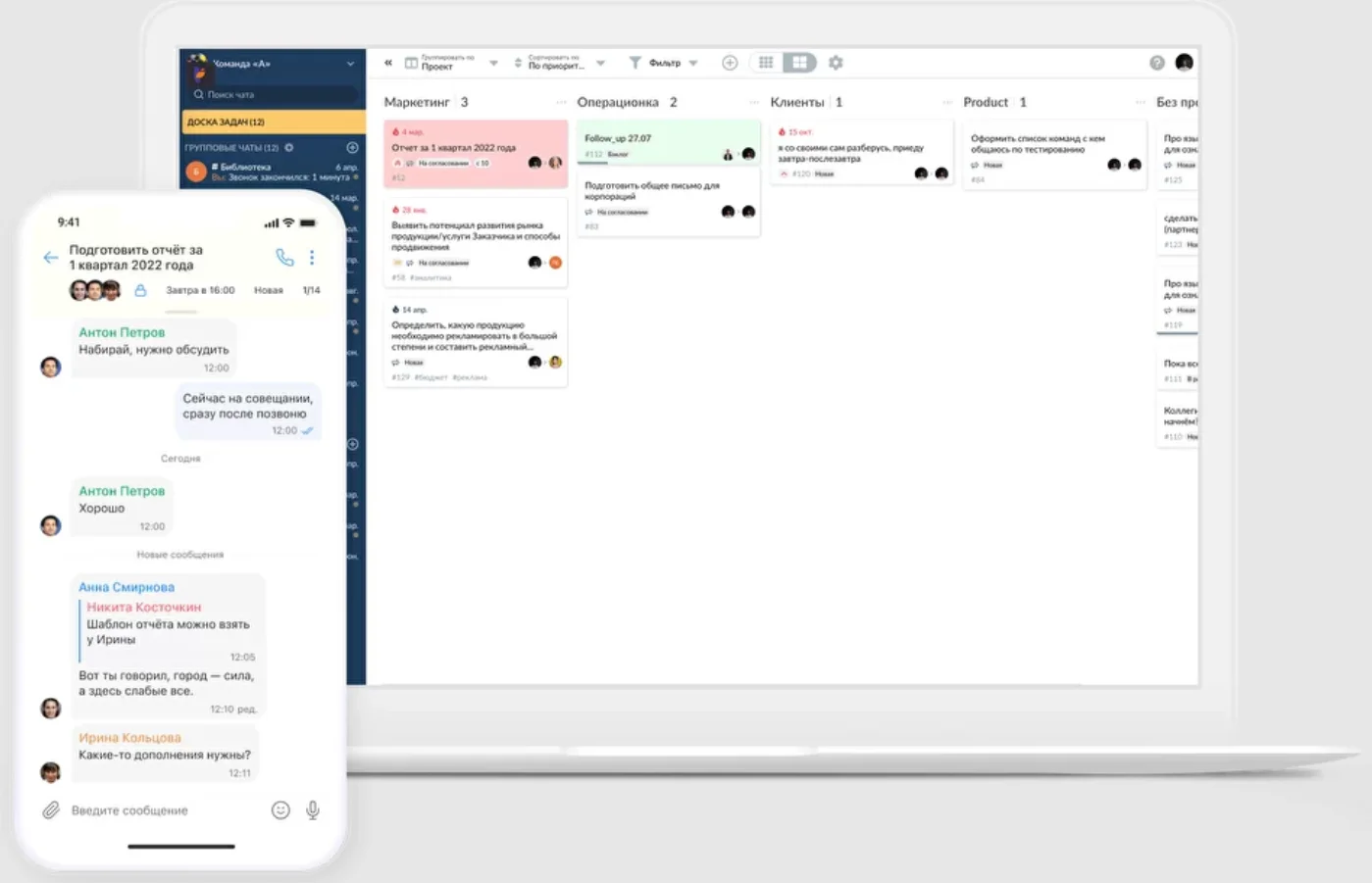 Мессенджер «Р7-Команда» предназначен для организации удобных и оперативных коммуникаций. Здесь поддерживаются почти все популярные способы взаимодействия — чаты, звонки, видеовстречи. Даже при удалённом формате работы сотрудники могут всё время оставаться на связи.