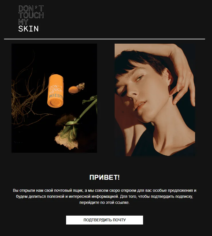 Письмо с просьбой подтвердить email — одно из тех, которые читатель спешит открыть сам по себе. Оно отправляется пользователю автоматически и должно содержать подтверждающую ссылку — а весь остальной контент остается на усмотрение бренда.