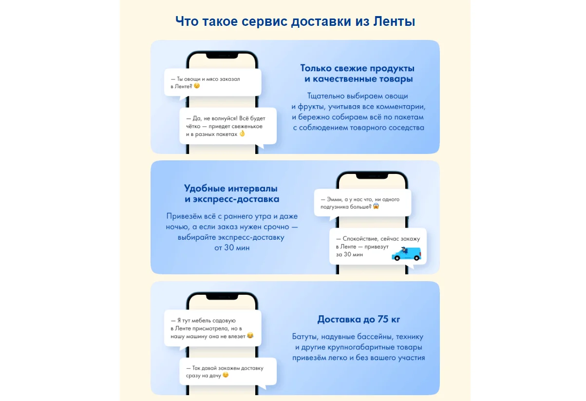 Текст в диалоговом окне вовлекает пользователя в историю. В рассылке «Ленты» этот прием используют для объяснения условий использования сервиса. Читать неформальные сообщения, оформленные как диалог в мессенджере, легко и приятно — будто сам пообщался с техподдержкой.