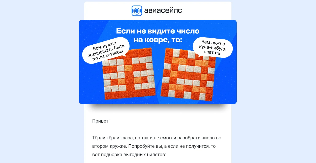 У Aviasales тоже симпатично сделано — и снова с котиком.
