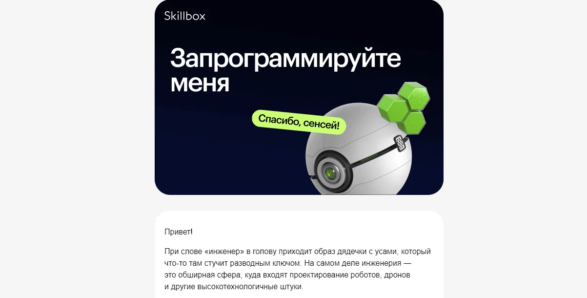 Трехмерная графика не менее разнообразна, чем обычные иллюстрации. Например, объекты могут быть очень реалистичными, как в рассылках Skillbox.