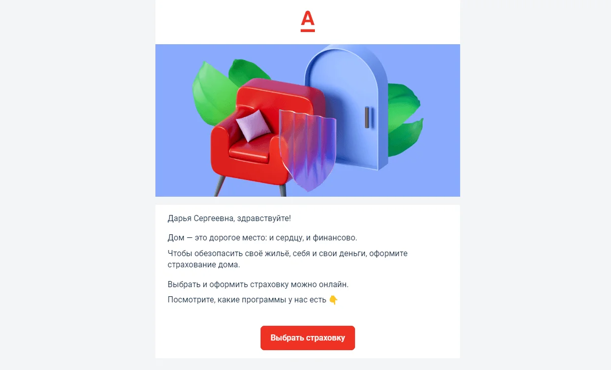 Объемные иллюстрации подходят не только в качестве заглавных картинок в письме. Сбер, например, удачно использует их и в качестве небольших акцентов рядом с текстовыми блоками.