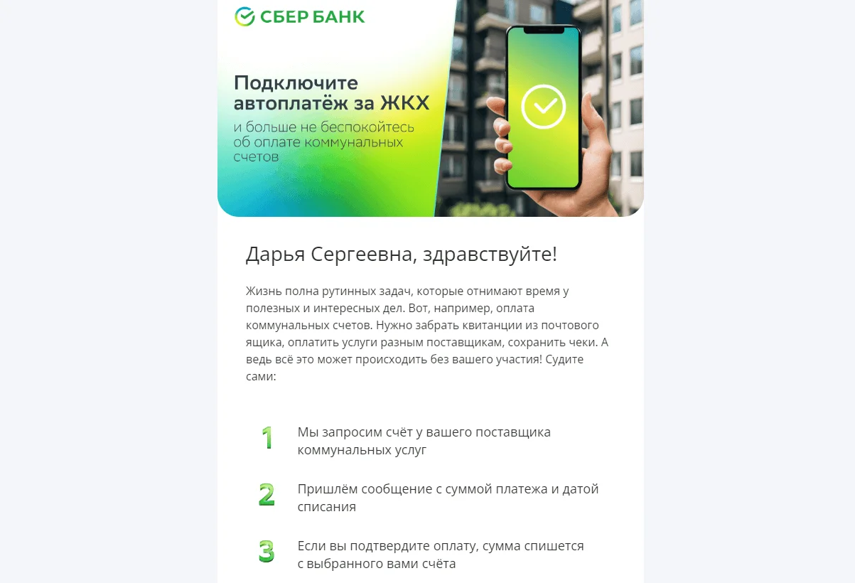 Выравнивание текста, выбор шрифтов, размер и цвет надписей — тоже важная часть дизайна. Некоторые бренды уделяют особое внимание работе с типографикой, это возможность сделать дизайн запоминающимся, но не перегруженным. Например, в рассылке Сбера используют крупные трехмерные цифры с фирменным градиентом для оформления списков. Это запоминающаяся деталь, которая поддерживает общий визуальный стиль письма.