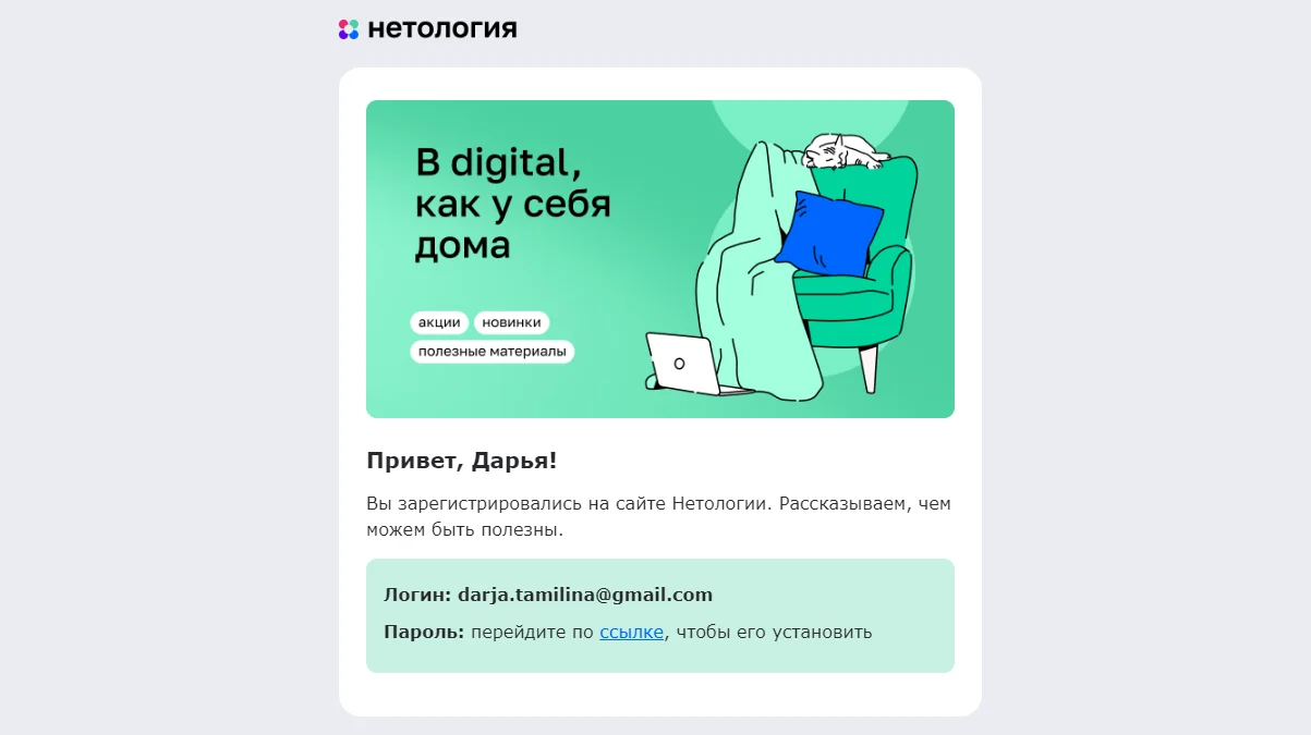 Проверяйте почту — письмо придет в течение 5 минут (обычно мгновенно)