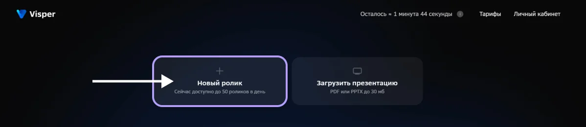 После прохождения регистрации войдите в Visper и нажмите «Новый ролик», чтобы открыть редактор для создания видео.