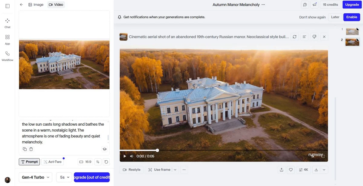 С помощью Runway можно анимировать фотографии, создавать видеоролики, генерировать аудио и многое другое. Пользователи могут воплотить свои творческие идеи в реальность, не имея специальных навыков в области видеомонтажа и анимации.