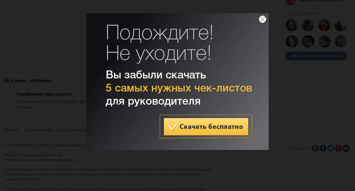 Пользователь заходит на сайт, проводит на нем какое-то время и тут — бац! — выезжает всплывающее окно.
